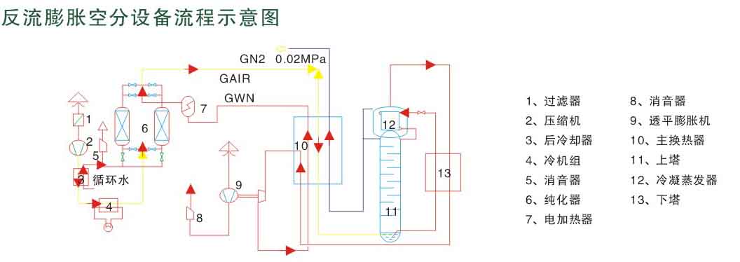高纯氮空分设备采用分子筛吸附、气体膨胀机膨胀制冷、单塔精馏原理。可根据用户需要不同形态(气态。液态)氮气的使用,可根据用户需要不同压力等级氮气定制,做到能耗最低,该振生产规模从10Nm3/h到10000Nm3/h(氮气产量)均可按照用户需求特殊定制。