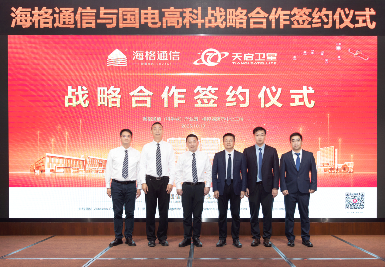 10月10日,2025中国移动全球合作伙伴大会在广州开幕。大会期间,海格通信与国电高科签署战略合作协议。双方将围绕我国首个低轨物联网星座——“天启星座”的核心技术研发与产业化应用,全面开展芯片模组、终端设备、天线系统及星载设备等领域的联合创新,共同打造覆盖“空天地海”的全域卫星物联网解决方案。