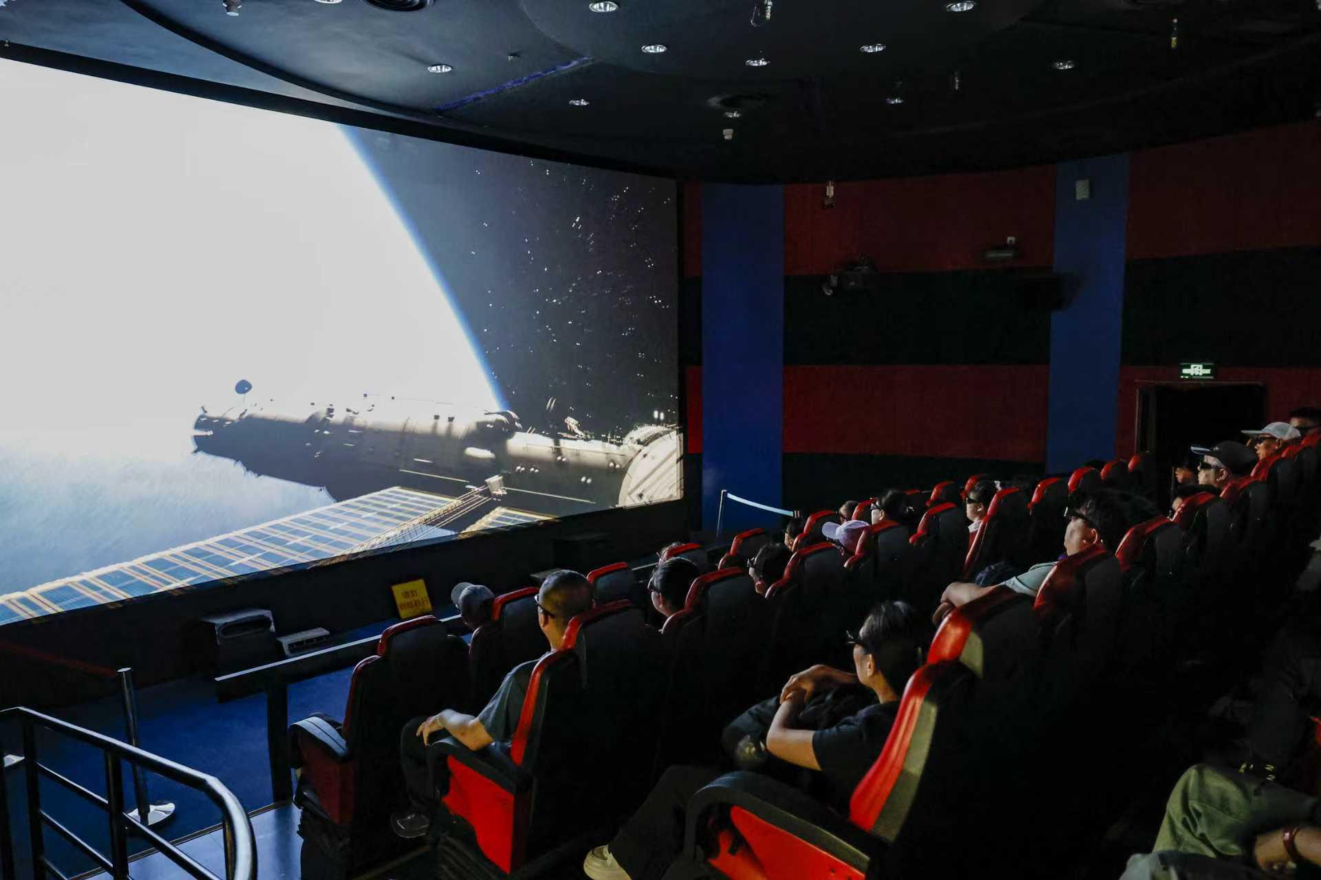 特效影院内,球幕影院和4D影院成为双节观影的热门选择。球幕影院的超大球形银幕和环绕式音效,让观众仿佛置身苍穹之下,探索世界奥秘;4D影院的多感官联动,融入震动、吹风、喷水等特效,让观众成为影片的“参与者”。每日多场影片轮番上映,满足了不同年龄段观众的需求,为大家带来了一场兼具科普魅力与视听震撼的光影盛宴。