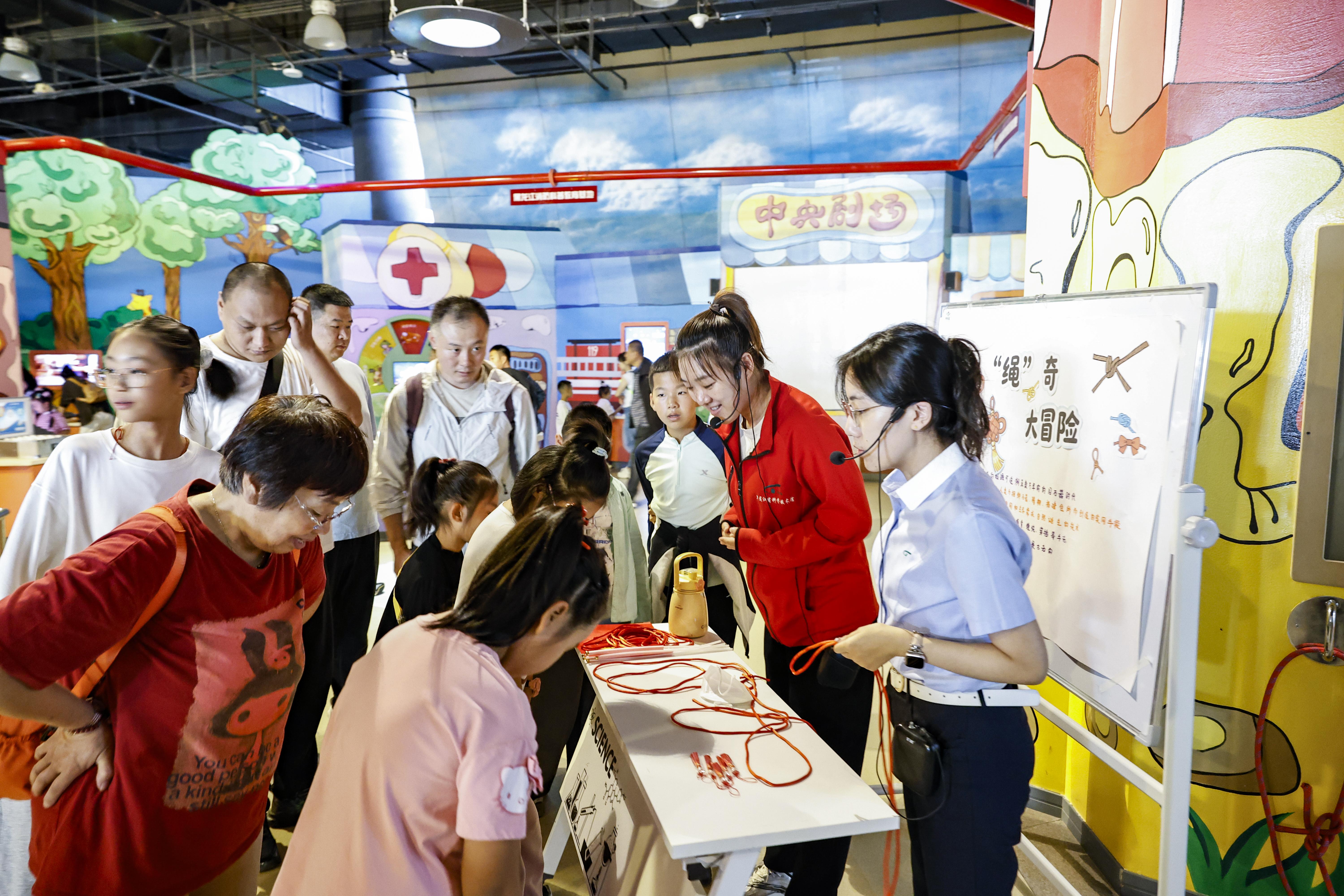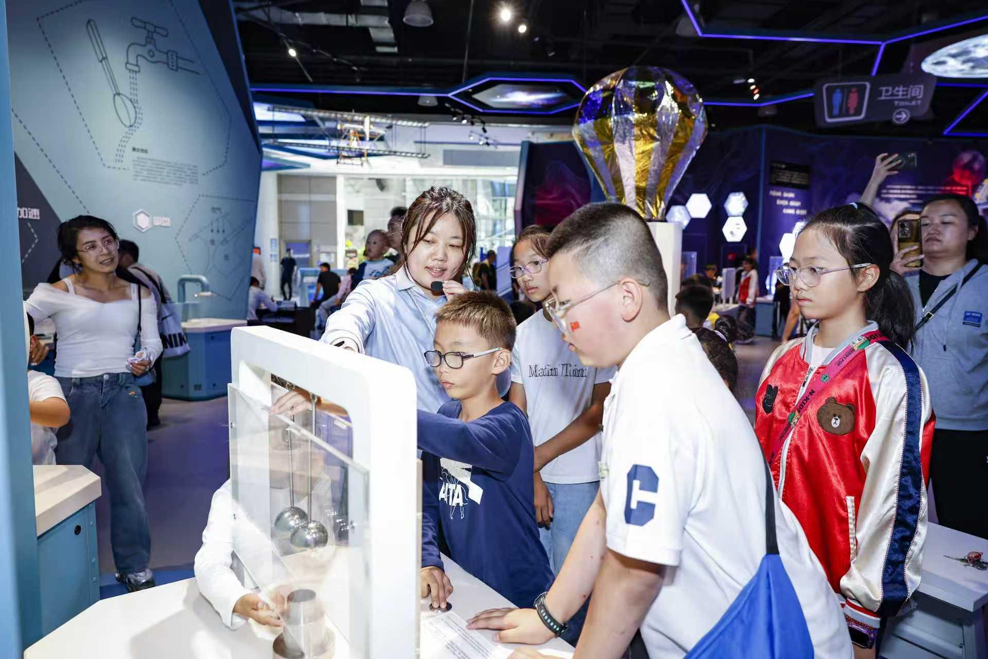 疯狂科学剧场内,“科学Party”精彩上演。牙刷、酒瓶、矿泉水等生活常见物品在工作人员手中变成了科学实验的道具,“静电飞花”“牙刷拔河”等奇妙现象接连出现。小朋友们看得目不转睛,时不时发出阵阵惊呼,现场充满了欢声笑语,大家尽情享受着科学带来的无限乐趣。