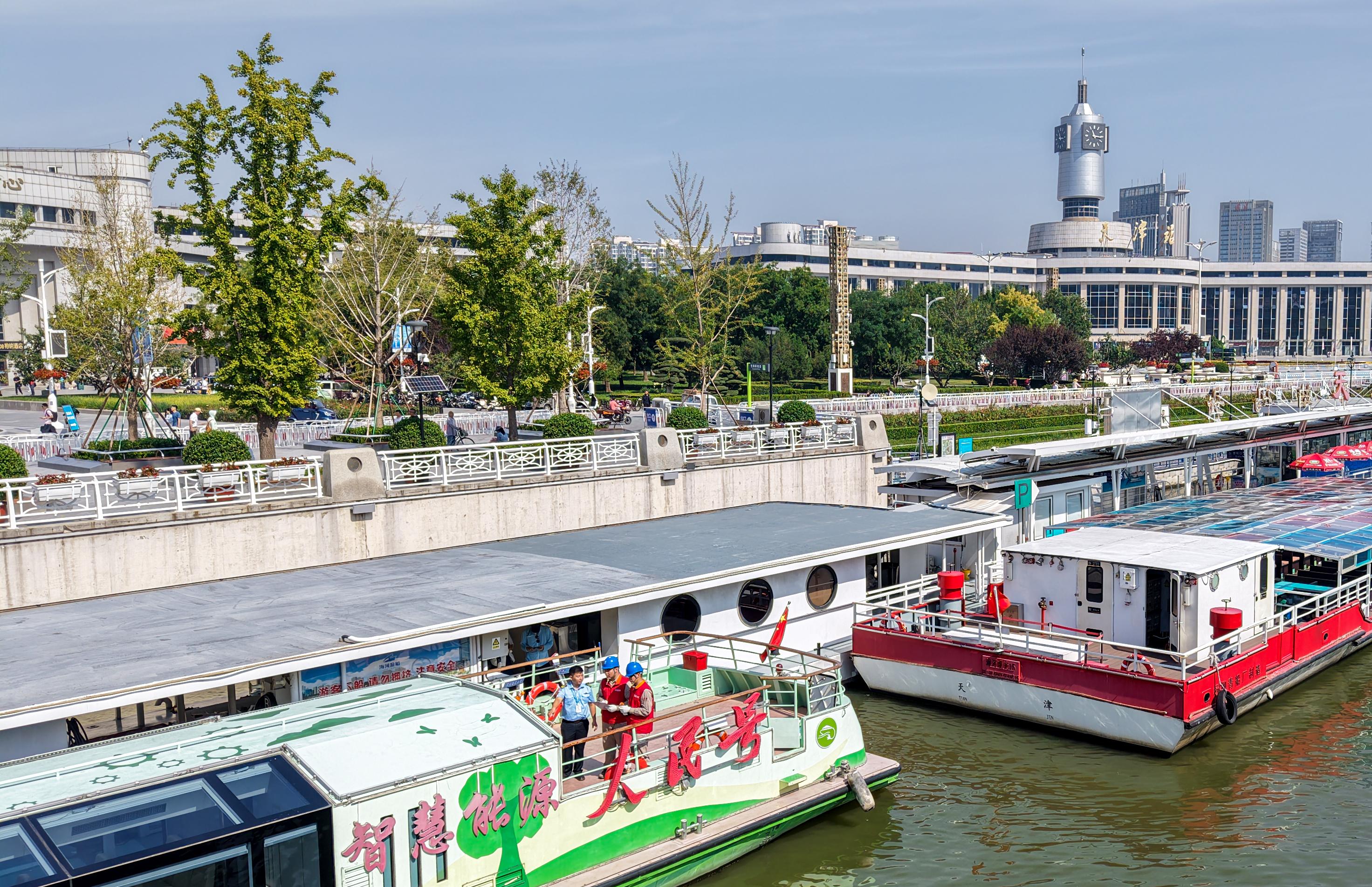 据天津津旅海河游船股份有限公司运营管理部副部长黑金一介绍,目前海河游船在运6座码头,新能源游船达到13艘。国庆期间,每天安排新能源游船55船次,总用电量达到4500千瓦时,约减少排放二氧化碳1.205吨。