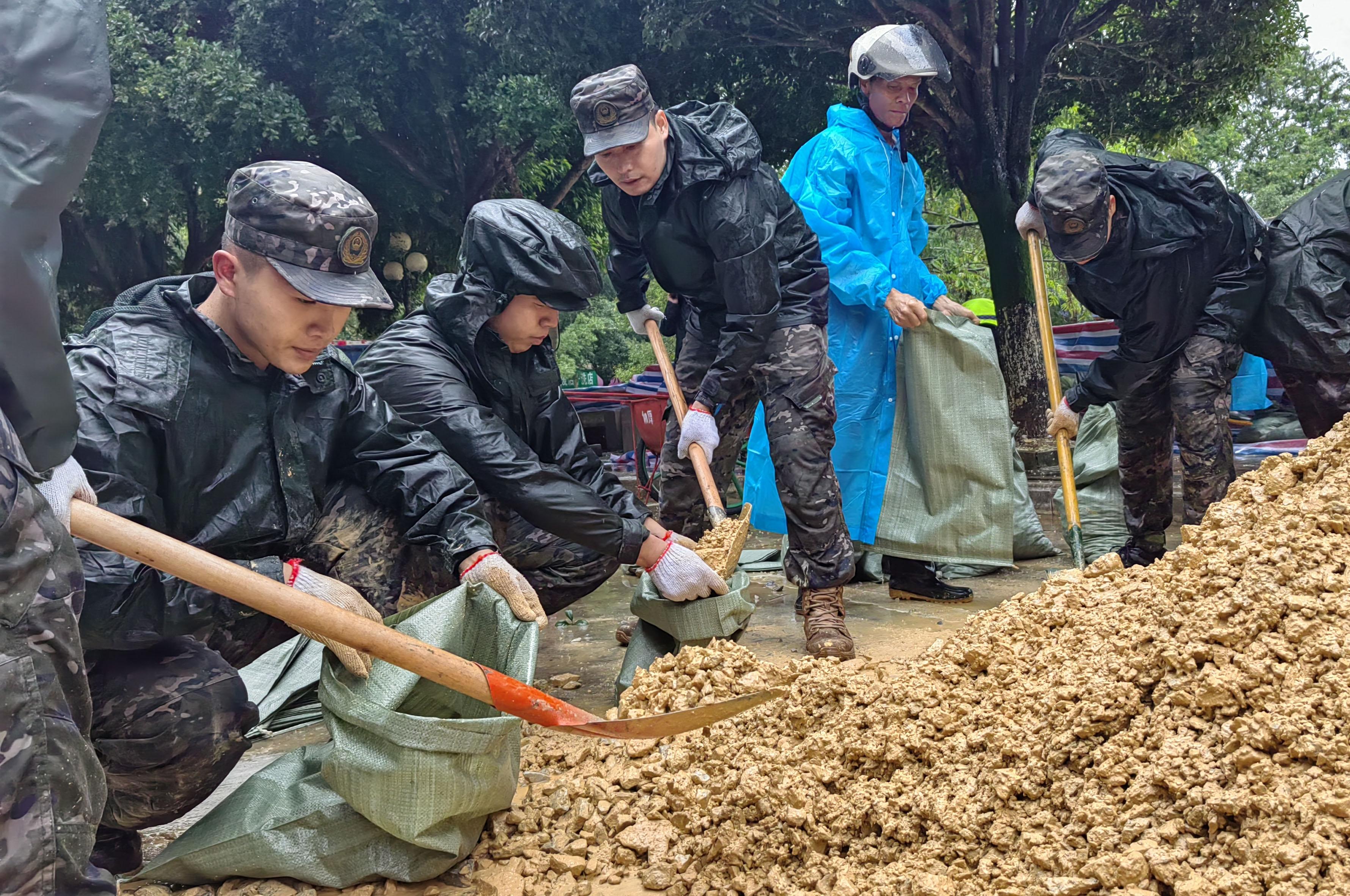 截至16时10分,经过3个小时作业,武警官兵与县政府防洪力量共装载防洪沙袋3500余袋,加固河堤长400余米、高0.7米,完成了堤坝垒筑任务。